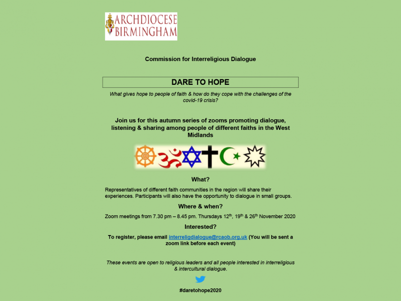 Interreligious dialogue ‘Dare to Hope’ Zoom series coming this autumn
