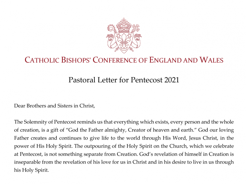 Catholic Bishops’ Conference pastoral letter for Pentecost