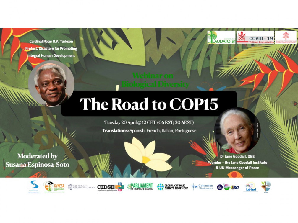A global audience of more than 1,000 – including Columbans – joined a webinar on biodiversity this week organised by the Vatican Dicastery for Promoting Integral Human Development and the Global Catholic Climate Movement (GCCM). They engaged in a conversation about the biological variety and variability of life on Earth with Cardinal Peter Turkson, Prefect of the Dicastery, and famous primatologist Dr. Jane Goodall. In fact, before she started her presentation, Dr. Goodall – ever creative, inspiring and hopeful at the age of 87 – gave a chimpanzee greeting!