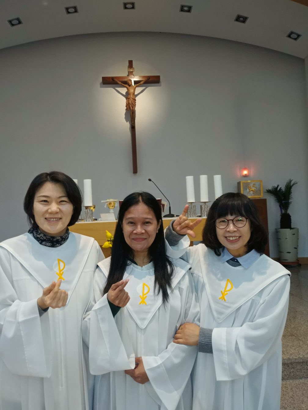 Being assigned to a new Korean parish inevitably left me feeling apprehensive. However, thanks to my new parish priest, Fr. Joseph Jang and the parishioners, who were very supportive, I gained more self-confidence and grew spiritually. Once a week I would read the readings in Korean during the mass. I felt awkward doing so yet grateful when they congratulated me afterwards. If you were to ask me, what in particular was my main mission in the parish, my answer would be ‘My presence’. Just being there with them in whatever way I could and support them whenever they needed me.