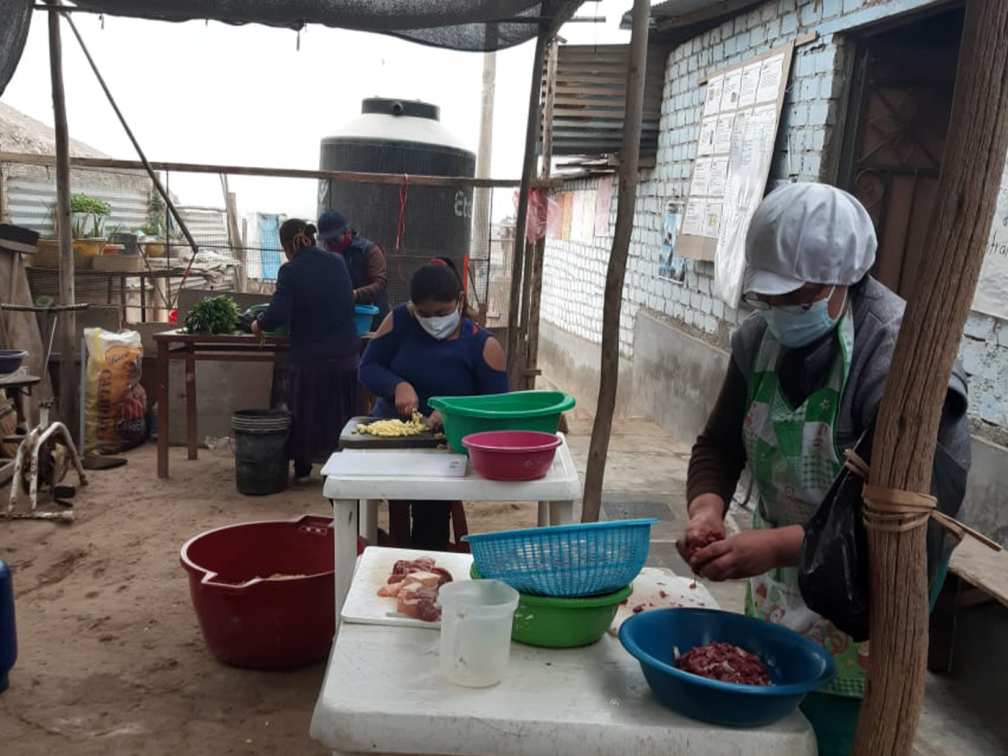 In San Benito, the mothers of the four homework clubs run their communal kitchens and a key local community leader started another. The latest figures for the beginning of October suggest that a 165 families have been helped. With an average of 5 people per family, around 825 people have received a meal each day. Add to that number the social cases the communal kitchens have taken on, 107 extra meals, gives you the grand total of 932 meals served altogether. We have been helping each communal kitchen with the purchase of foodstocks, especially vegetables, and with bio-security equipment.