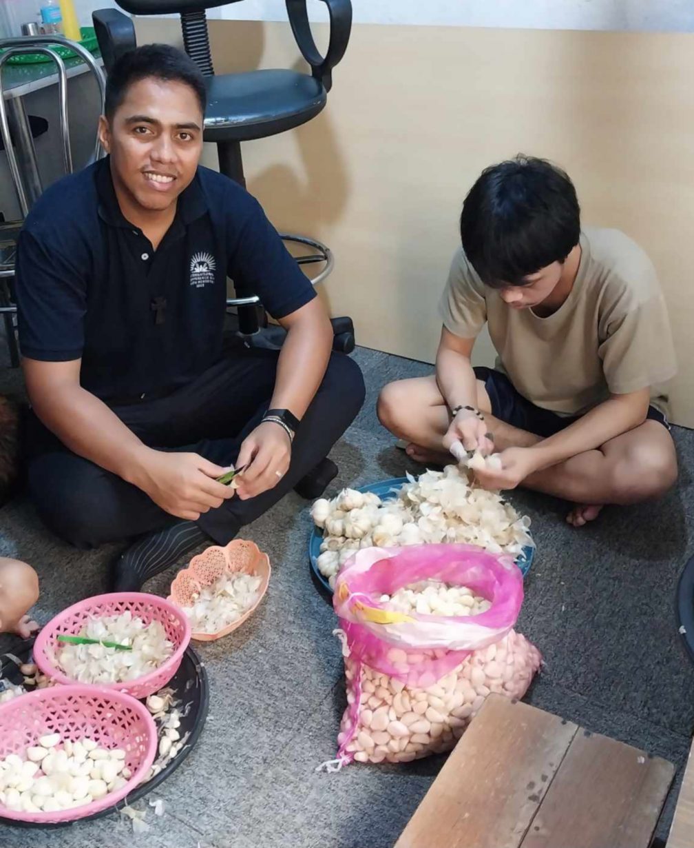 People also try to make ends meet by hustling around the port for casual jobs, and by working in town as street-sellers, road sweepers, tricycle drivers or market vendors. A favourite “cottage industry” is the peeling of garlic on behalf of city restaurants. “A family can peel a sack of garlic a day”, Lydio told me. A sack of peeled garlic sells at about $2.